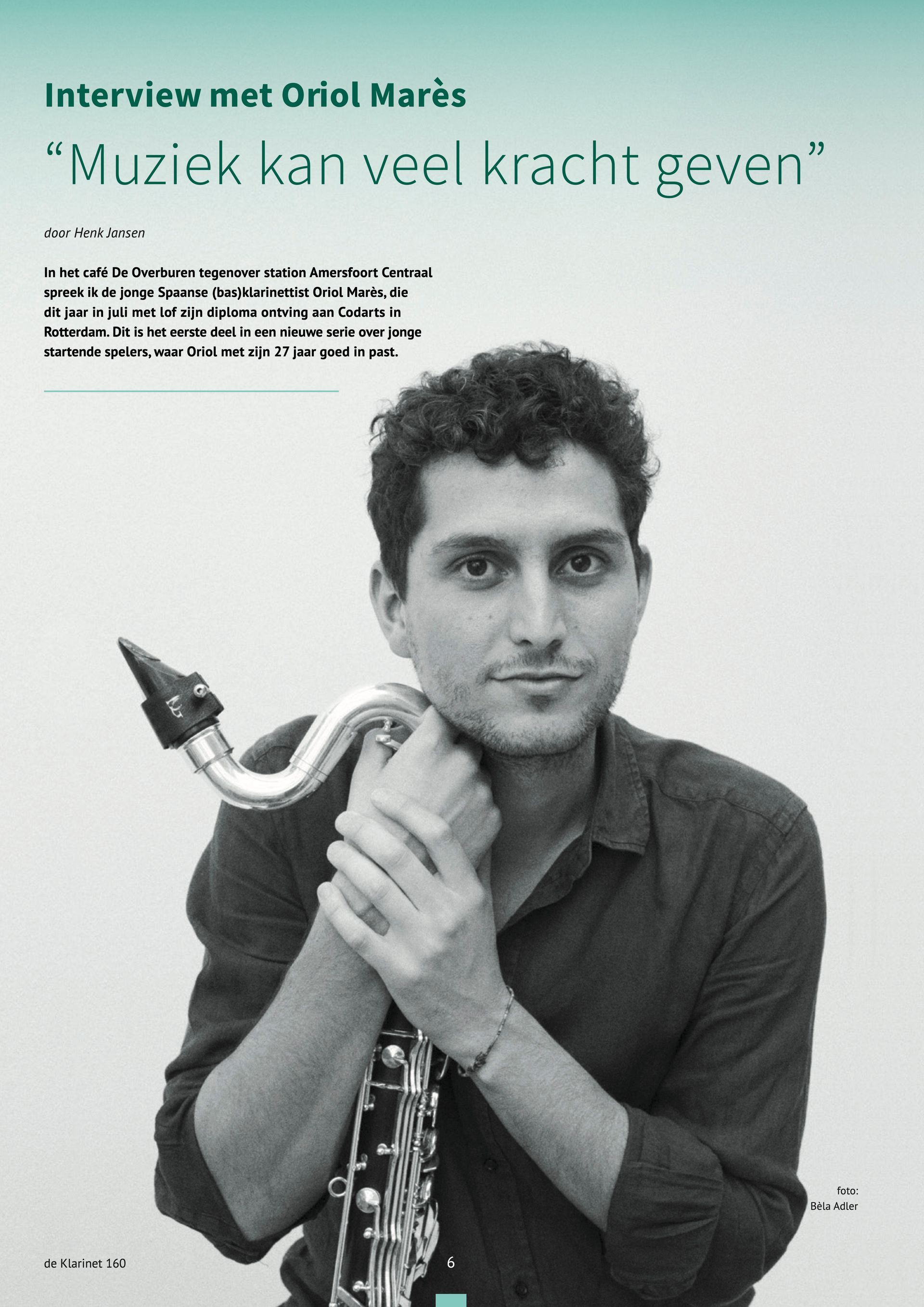 Featured interview in the Dutch Clarinet Magazine, De Klarinet, 160